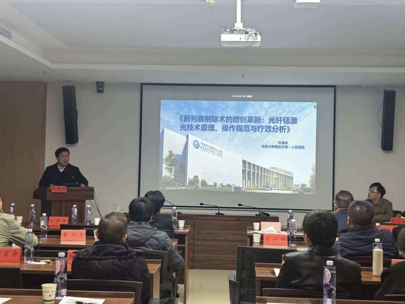 在学术交流环节,众多知名专家带来了精彩的分享。梁朝朝教授凭借深厚学术积淀与丰富临床经验,围绕创新推动学科发展关键问题,深入浅出讲解,将前沿理论与实际案例紧密结合,分享独到见解。皖南医学院第一附属医院黄后宝教授以“人工智能的临床应用”相关内容展开授课,深入剖析人工智能在临床应用中的热点。安徽医科大学附属安庆第一人民医院毕满华教授就“前列腺剜除术的微创革新:铥激光技术原理、操作规范与疗效分析”进行详细讲解。安徽医科大学第一附属医院尹水平教授带来“高危肾癌术后辅助治疗的决策困境和精准探索”,为与会者就在临床处理复杂肾癌提供更多临床诊治思维。授课专家与参会人员积极互动,现场学术氛围热烈。