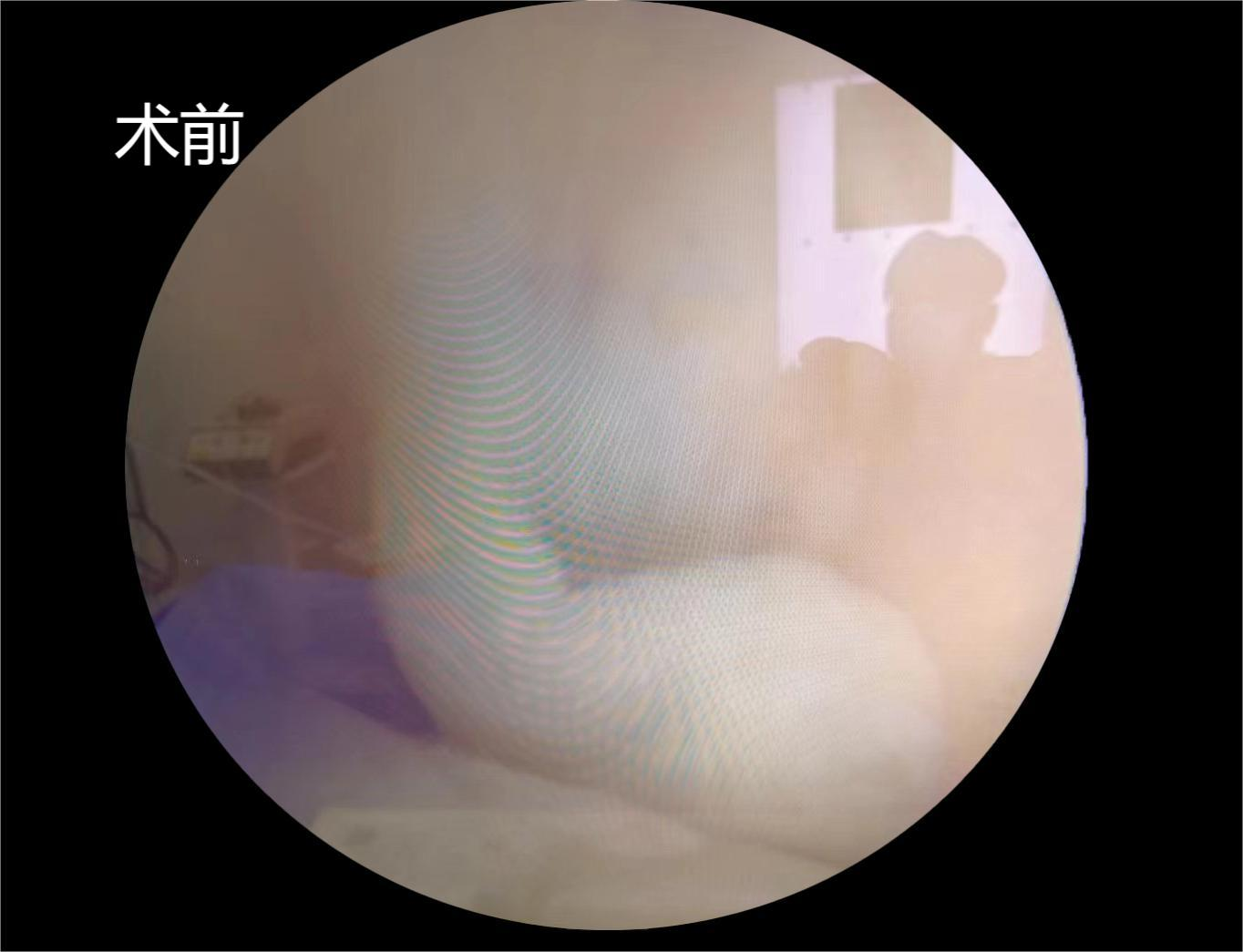 患者系“右肩疼痛,活动受限三个月”入院,入院后完善相关检查示:右冈上肌腱巨大撕裂并回缩,肩峰间隙狭窄。专科查体:右肩活动受限,落臂征阳性,空罐试验阳性,拿破仑试验阳性,肩峰撞击试验阳性。患者右肩疼痛难忍,夜间疼痛明显,严重影响睡眠,生活质量差。在全麻下关节镜下行肩袖修补术、肩峰减压成形术,术中见肩袖间隙组织增生,关节囊稍增厚,滑膜组织充血水肿,在关节镜可视化下,利用等离子射频消融电极松解肩袖间隙,切除充血滑膜组织,镜头转向肩峰下,见冈上肌腱巨大撕裂,显露肩峰,见肩峰骨赘形成,刨削增生骨赘,肩峰下间隙明显增大,冈上肌腱附着处植入内排锚钉,用缝合钩带线缝合肩袖,术后患者右肩疼痛明显缓解,术后肩关节外展包固定。