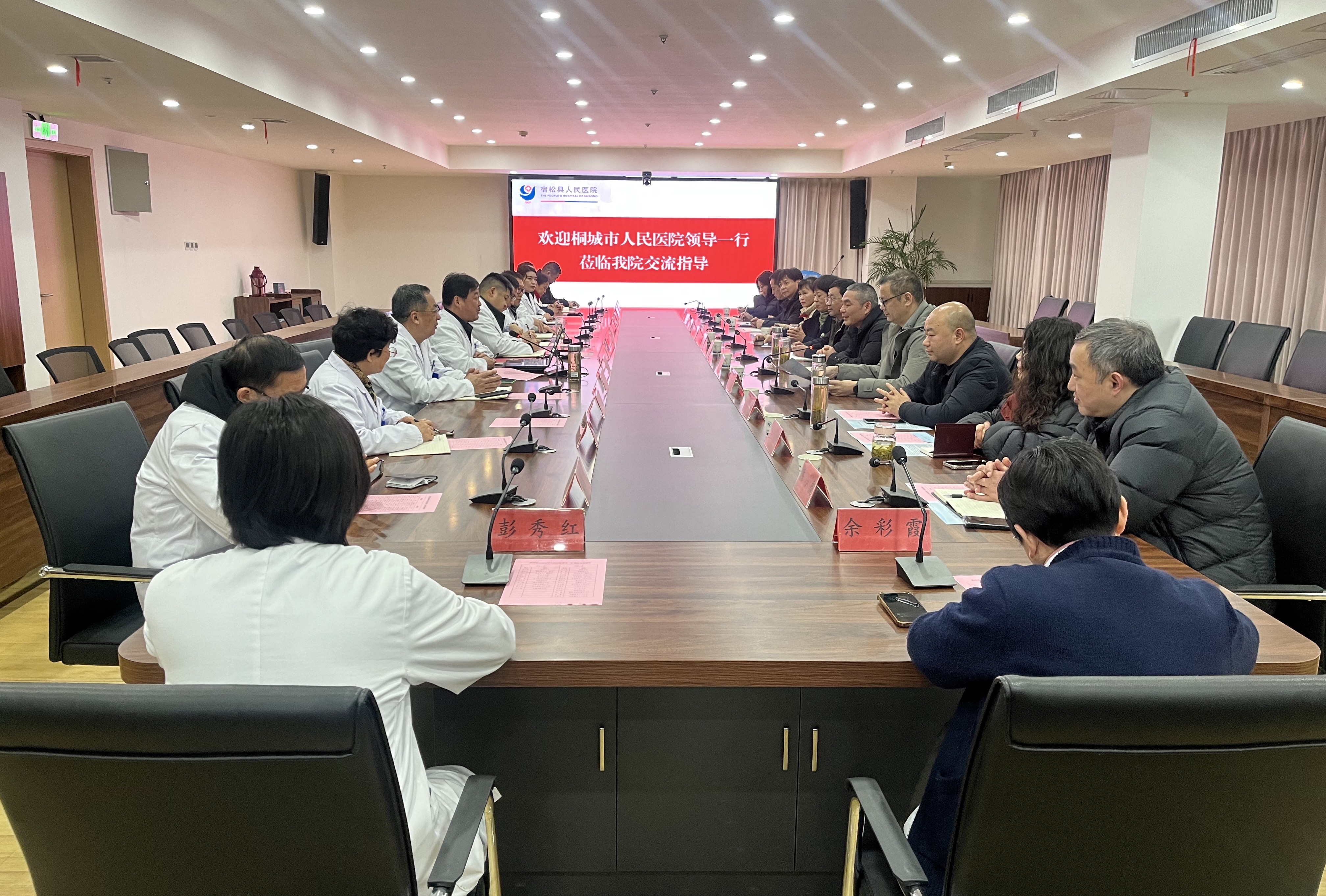 春潮初涌启新程,交流互鉴共提升。2月5日上午,桐城市人民医院党委书记赵开颜、党委副书记、院长詹德进带领考察团一行11 人,莅临我院考察交流医院高质量发展与紧密型医共体建设工作。我院领导班子成员及相关职能科室负责人陪同。